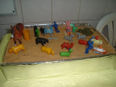 A caixa de areia pode ser utilizada com todos os alunos da educação infantil ao segundo grau. Tenho alunos de quatro a vinte três anos e a uso com todos. A forma com que trabalhamos é que é diferente. Com as crianças muito pequenas trabalho apenas com descrição de cores, sons dos animais, aspecto do corpo e outros. As miniaturas podem variar de acordo com as possibilidades e objetivos que se propõe. Os resultados são lentos, mas significativos se perseverarmos nos nossos objetivos que é o de posibilitar as crianças com deficiência o acesso a compreensão, organização de suas idéias e acesso a escrita e leitura. Espero que aproveitem a caixa de areia e criem novas maneiras de a utilizarem."